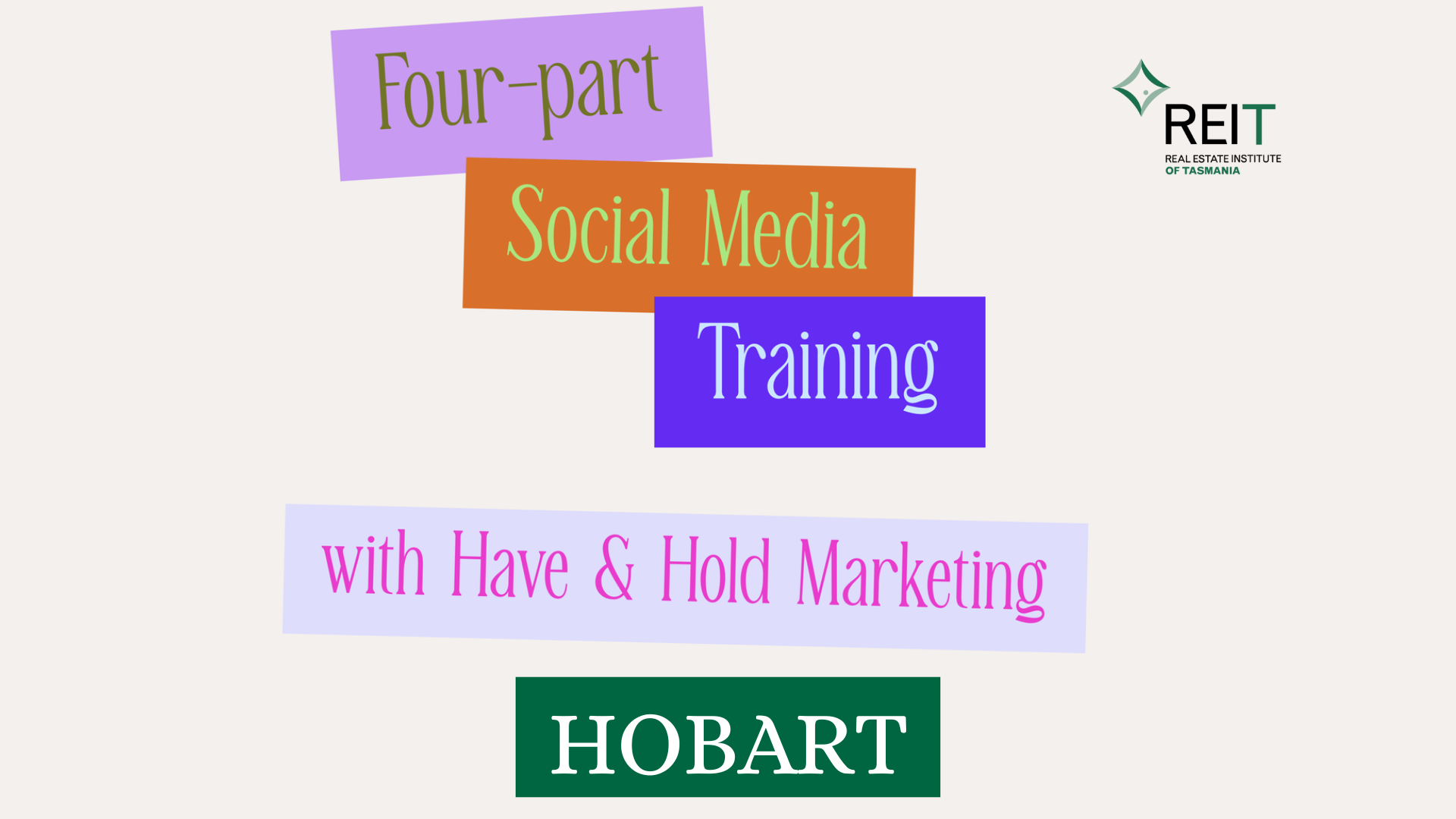 Hobart sessions will be held at the REIT training room. Your ticket entitles you to all four sessions. Please accept marketing consent at checkout so that we can communicate with you about this event.